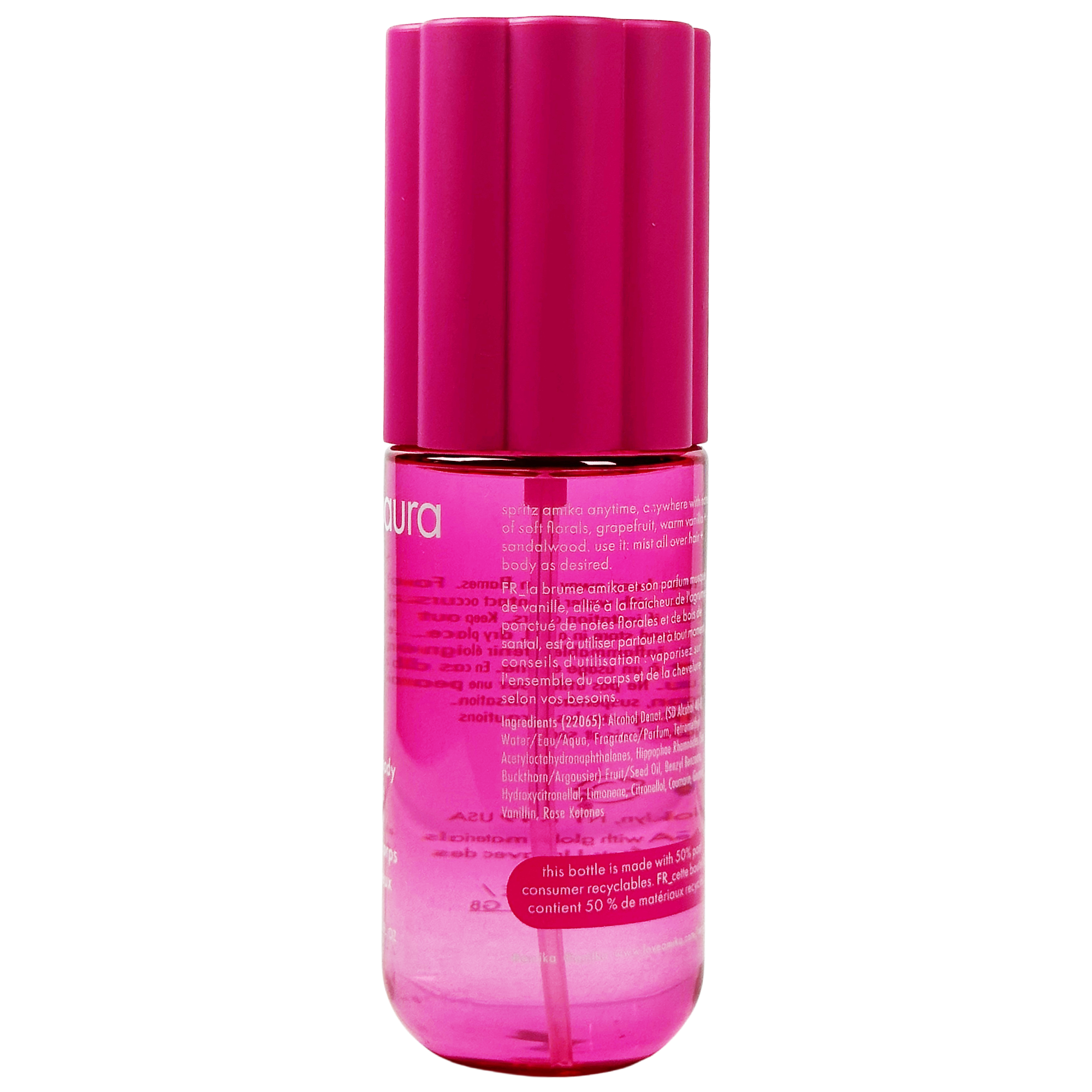 Spritz Amika:Aura onto hair and body for an uplifting burst of bright, pink grapefruit, juicy apricot and velvety vanilla. Layer with your other favorite Amika formulas.