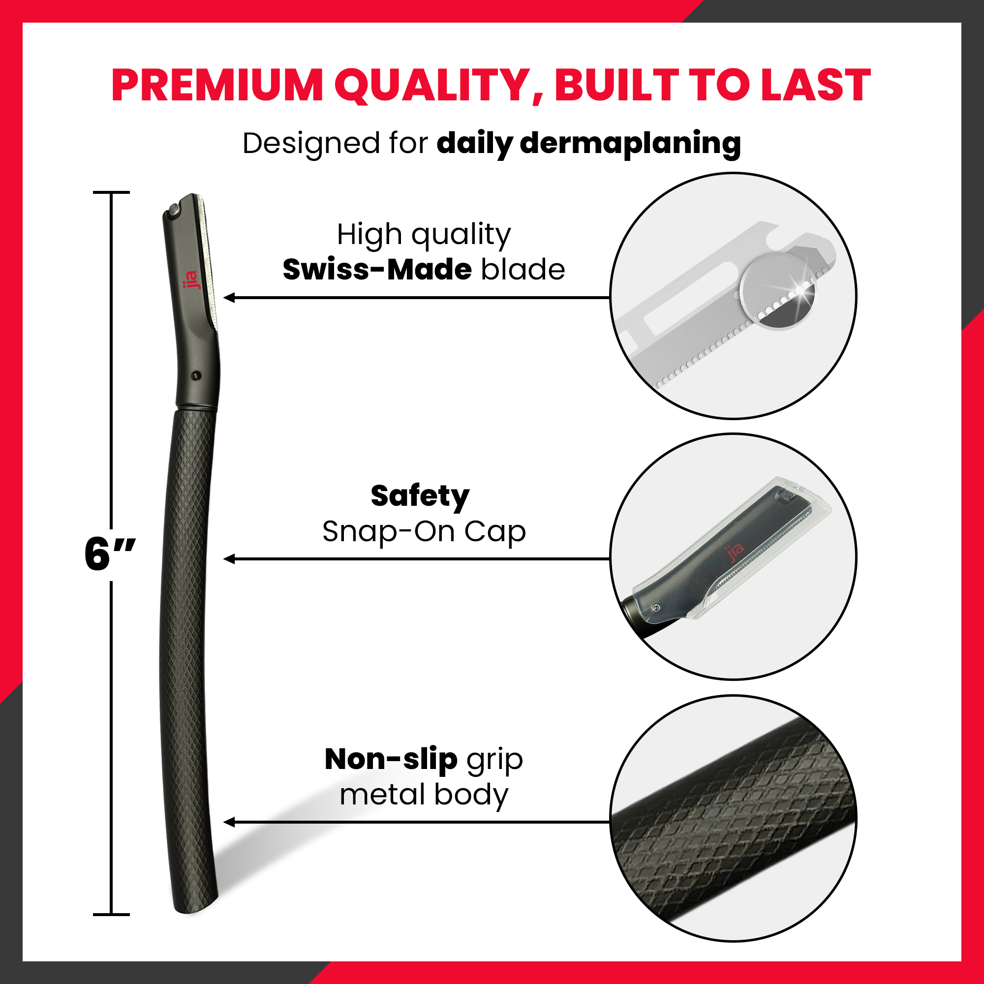Say goodbye to unwanted peach fuzz and hello to glowing, smooth skin with Jia Dermaplaning Facial Razors! Whether you're prepping for a flawless makeup day, boosting your skincare routine, or just craving that soft, glowing complexion, we've got the perfect razor for you. With four unique options, you can pick the one that fits your needs—whether you're all about high-quality tools, eco-friendly choices, or something compact for travel. Smooth, simple, and effective!