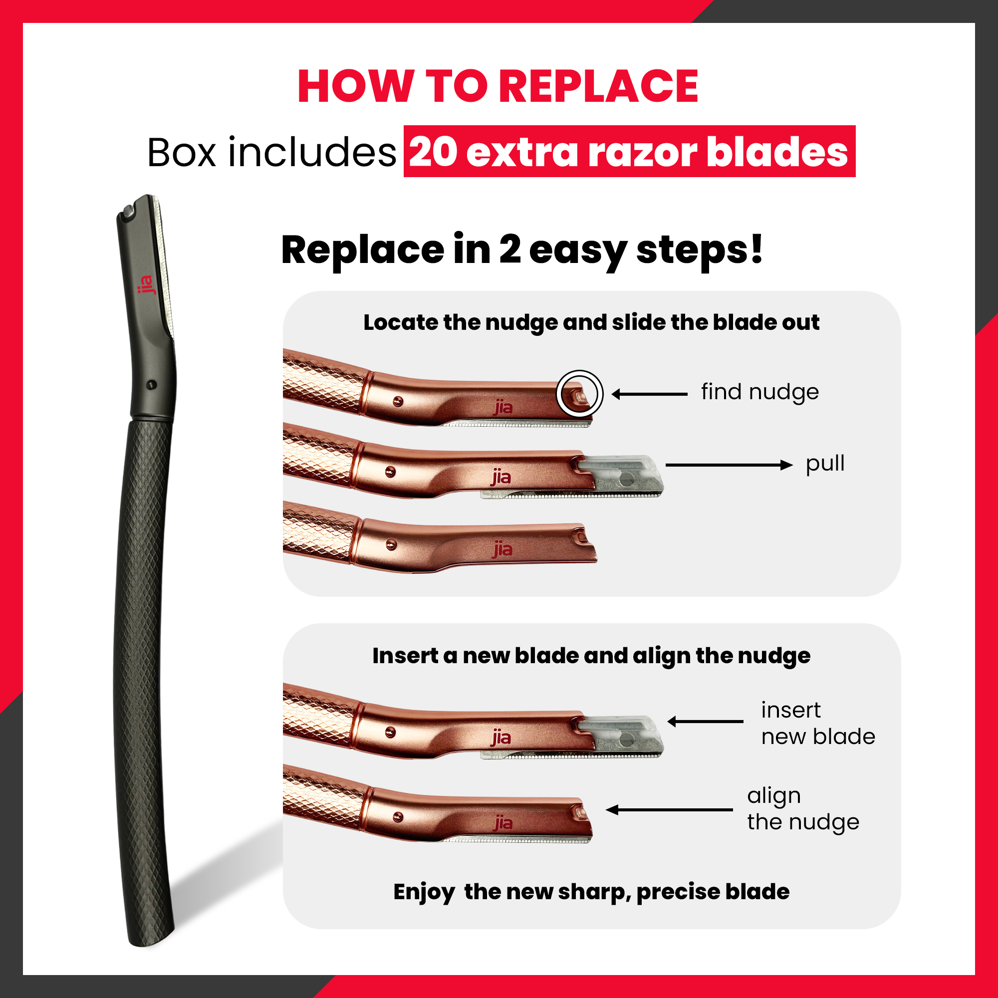 Jia Dermaplane Facial Metal Razor With 20 Replaceable Blades in Black Sapphire