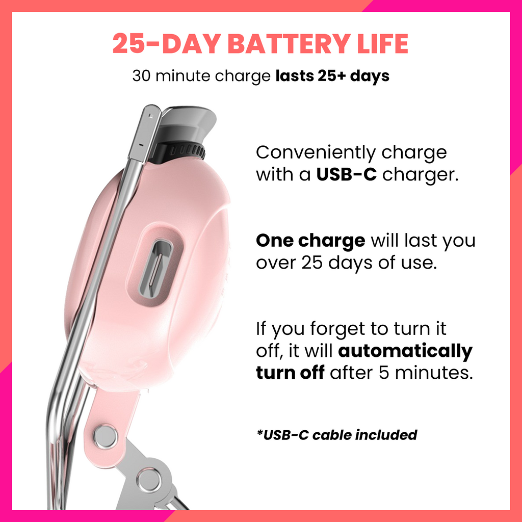 Compact and rechargeable via USB-C, the SleekCurl offers a quick-charge feature that lasts up to 25 days per charge, making it a must-have for beauty lovers on the go.