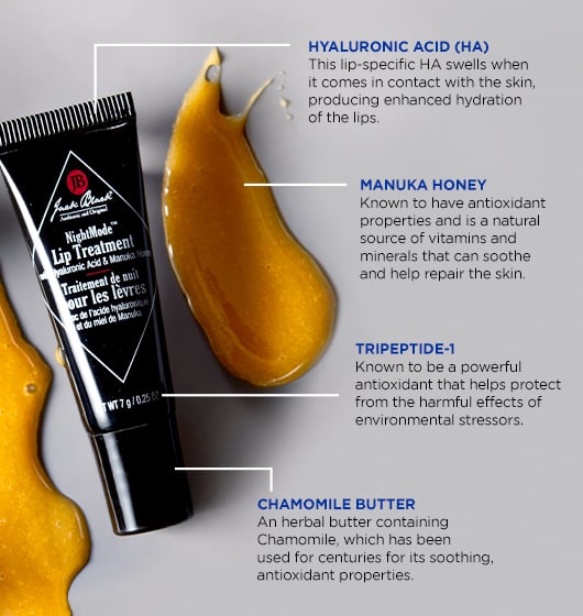 Rich, emollient formula provides soothing, replenishing hydration while you sleep. This overnight repairing treatment for dry lips is free of synthetic flavor and contains an encapsulated form of Hyaluronic Acid and Tripeptide-1 to help improve hydration and the appearance of lips. Manuka Honey and Chamomile Butter help to soothe the lips and the senses.