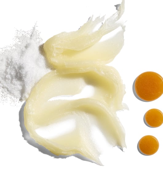 Petrolatum, Lanolin, Theobroma Cacao (Cocoa) Seed Butter, Cera Alba/Beeswax/Cire d’abeille, Ozokerite, Polyglyceryl-3 Beeswax, Butyrospermum Parkii (Shea) Butter, Mel/Honey/Miel, Isohexadecane, Hydrogenated Vegetable Oil, Prunus Amygdalus Dulcis (Sweet Almond) Oil, C18-38 Alkyl Hydroxystearoyl Stearate, Persea Gratissima (Avocado) Oil, Sodium Hyaluronate, Chamomilla Recutita (Matricaria) Flower Extract, Tripeptide-1, Tocopheryl Acetate, Ethylene/Propylene/Styrene Copolymer, Cera Microcristallina/Microcrystalline Wax/Cire microcristalline, Butylene/Ethylene/Styrene Copolymer, Potassium Carbonate, Xanthan Gum.