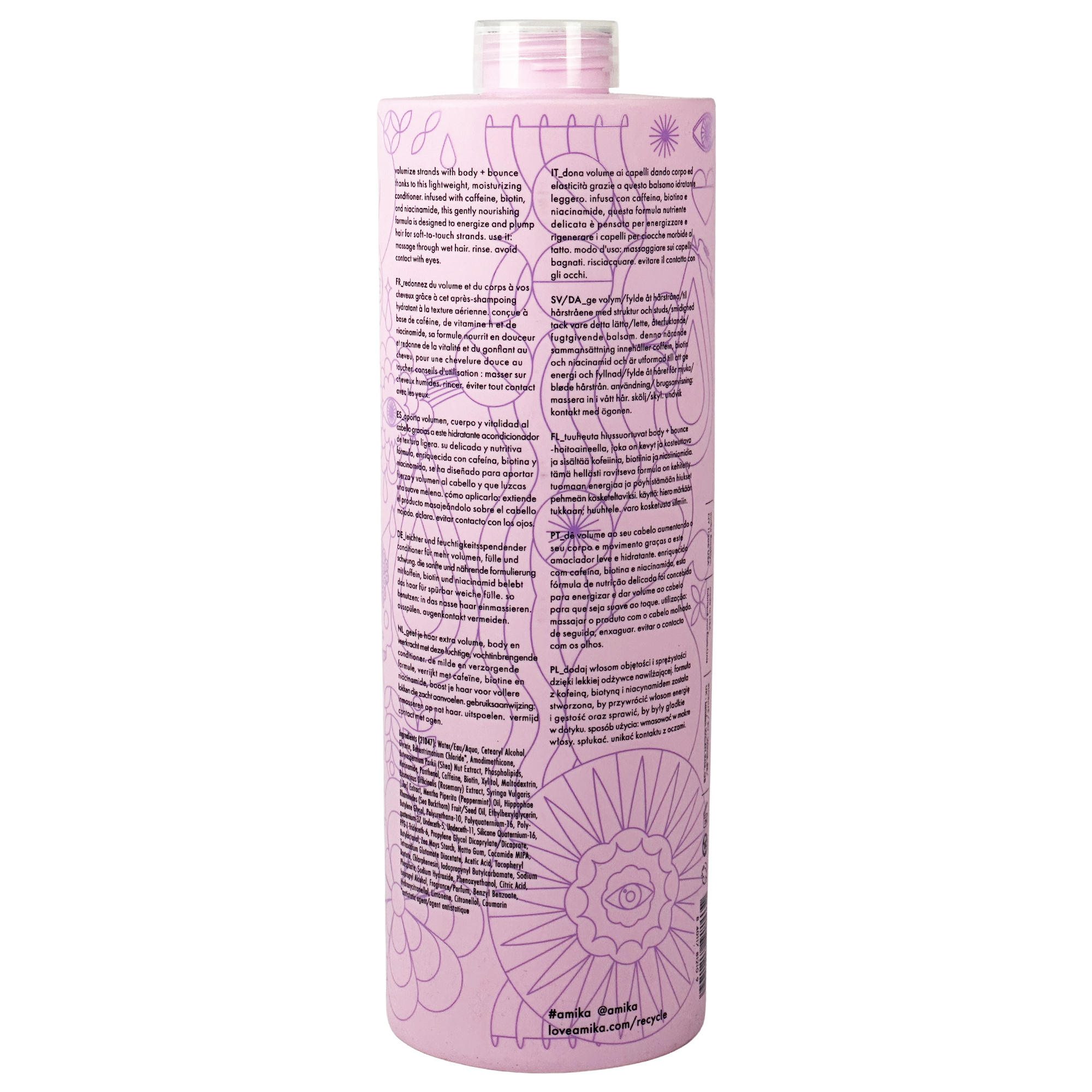 - iconic volume, the amika way: infused with caffeine to energize flat strands + send limp hair home.
