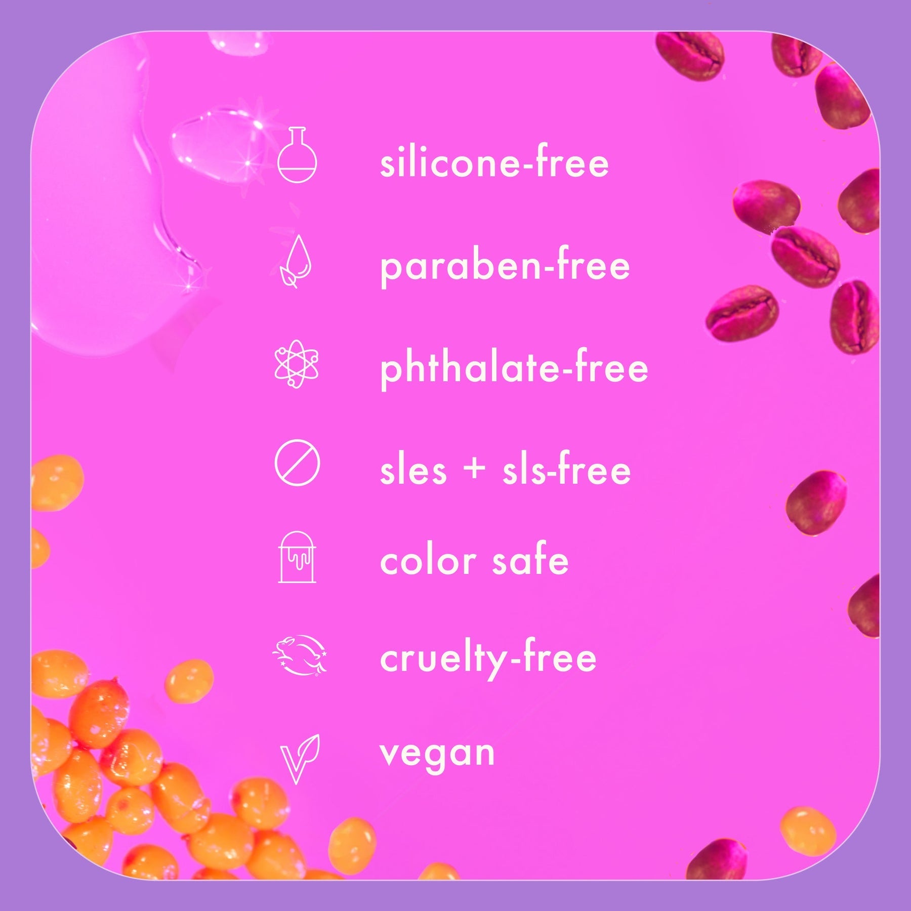 - sea buckthorn: our signature ingredient that’s loaded with vitamin C, A, fatty acid omega 7 + antioxidants making it the ultimate holy grail ingredient for hair + scalp.