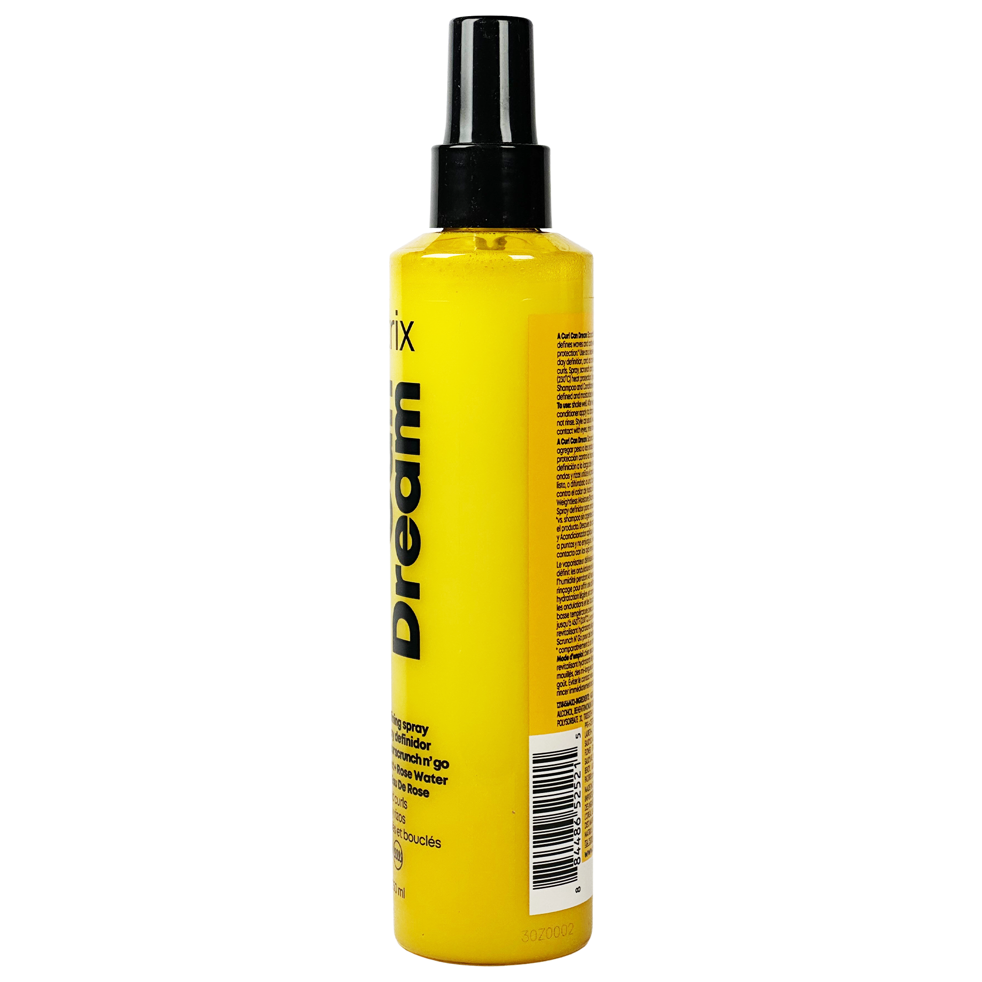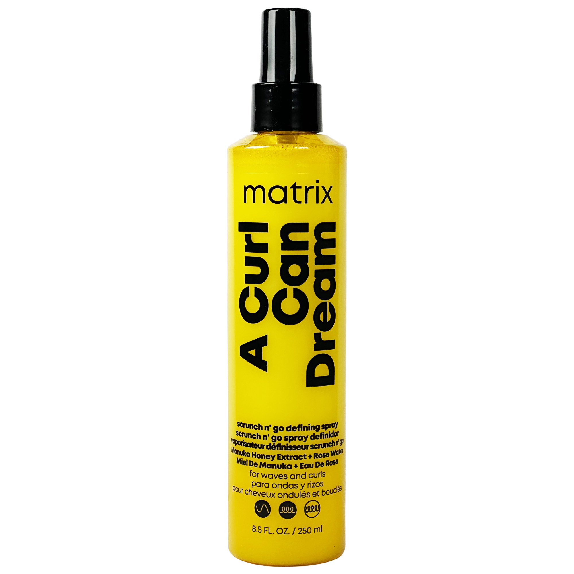 Matrix A Curl Can Dream Scrunch N' Go Defining Spray infused with manuka honey extract and rose water, for waves and curls, defines the hair's pattern without weigh down. This spray is packed with ingredients to achieve all day moisture and shine.