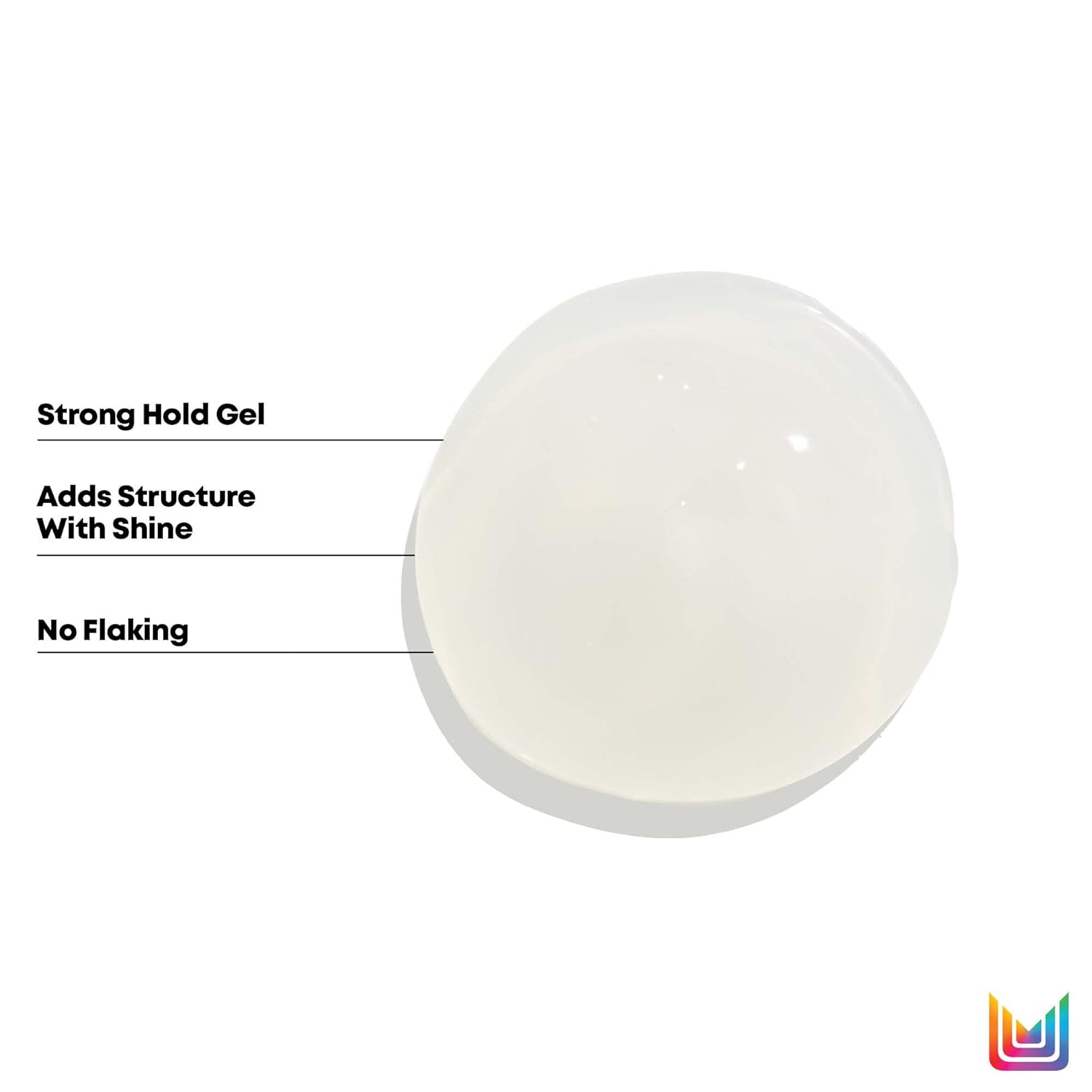 Strong hold gel for control without stiffness or crunch. Adds structure with shine. Applies clean and rinses out easily. No flaking.