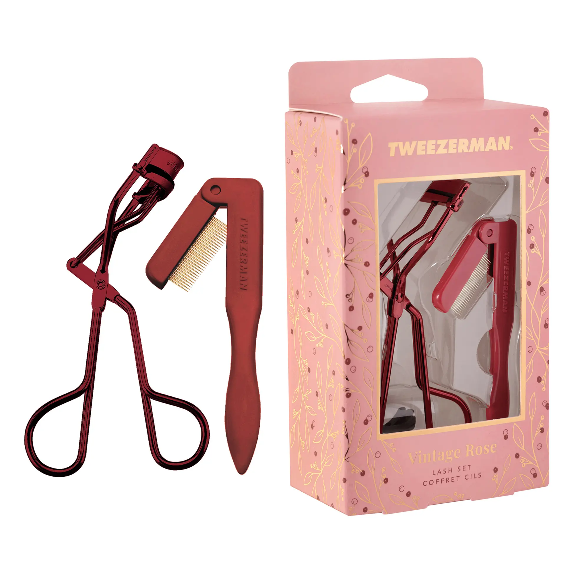 Tweezerman Classic Lash Curler + Folding iLashComb Eyelash Comb Gift Set - Vintage Rose | 4328-VRR