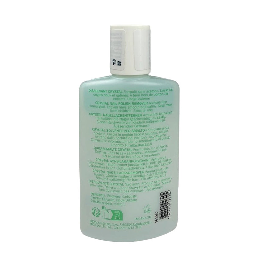 The Mavala Crystal Nail Polish Remover is a gentle, effective formula designed to remove nail polish quickly while helping protect the natural condition of your nails. Its lightweight, acetone-free formula works to dissolve polish without excessively drying the nail plate or surrounding cuticles, making it ideal for frequent use.
