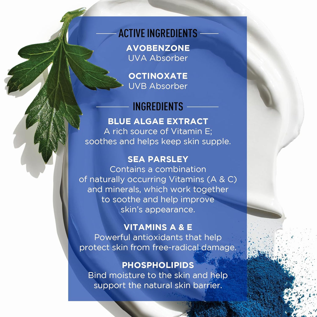 Active Ingredients:Avobenzone 2.2%.......................................SunscreenOctinoxate 7.5%.........................................SunscreenInactive Ingredients:Aqua (Water), Cyclopentasiloxane, Octyldodecyl Neopentanoate, Phenethyl Benzoate, Dimethicone, Glycereth-26, Hydroxyethyl Acrylate/Sodium Acryloyldimethyl Taurate Copolymer, Phenoxyethanol, Hydroxypropyl Starch Phosphate, Cetearyl Glucoside, Carbomer, Pyrus Malus (Apple) Fruit Extract, Butylene Glycol, Sodium Hydroxide, Disodium EDTA, Sodium Hyaluronate, Lavandula Angustifolia (Lavender) Oil, Iodopropynyl Butylcarbamate, Pelargonium Graveolens Flower Oil, Rosmarinus Officinalis (Rosemary) Leaf Oil, Lecithin, Melissa Officinalis Extract, Haslea Ostrearia Extract, Palmaria Palmata Extract, Calendula Officinalis Flower Extract*, Glycerin, Leontopodium Alpinum (Edelweiss) Extract*, Retinyl Palmitate, Tocopheryl Acetate, Anthemis Nobilis Flower Oil, Peucedanum Ostruthium Leaf Extract*, Buddleja Davidii Leaf Extract*, Artemisia Umbelliformis Extract*
