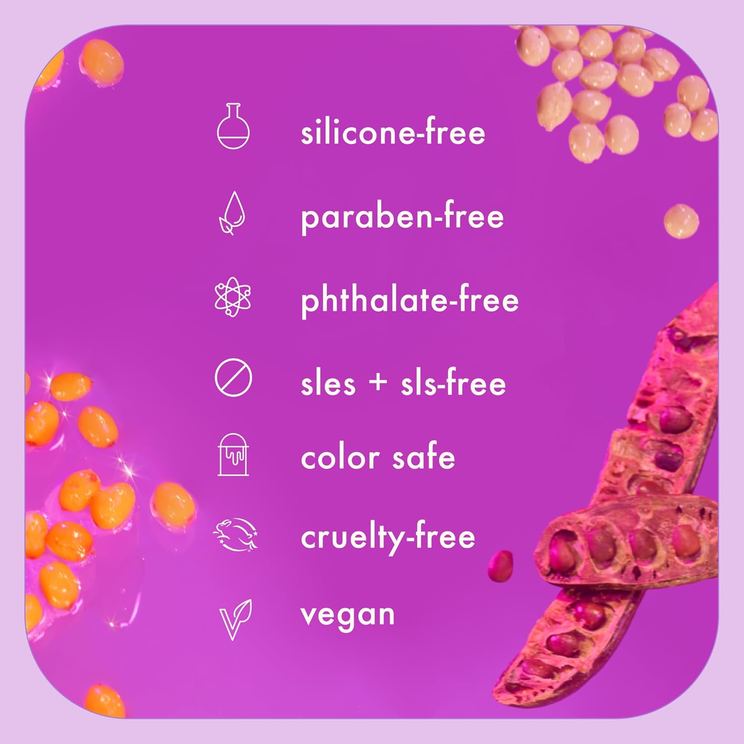 - carob seed extract: works to help achieve stronger, fuller-looking strands.