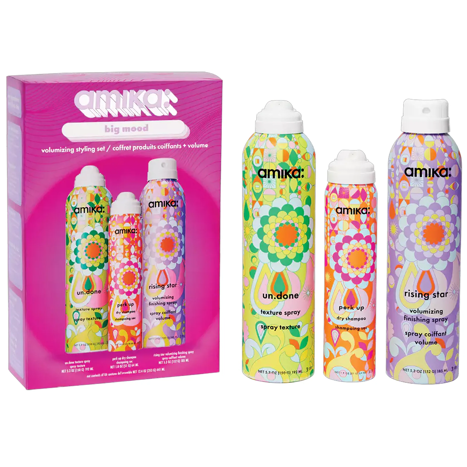 Amika BIG MOOD Volumizing Styling Set | Un.Done Texture Spray, Perk Up Dry Shampoo & Rising Star Volumizing Finishing Spray
