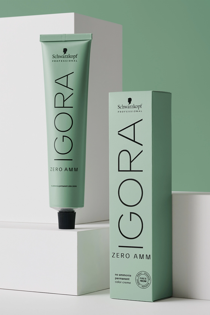 IGORA ZERO AMM is a permanent hair color that is free from ammonia and ammonia odor. Enriched with Phytolipid Technology, IGORA ZERO AMM’s formula offers true-to-tone color results with up to 100% white hair coverage. All IGORA ZERO AMM formulations are vegan, free from silicones and without added fragrance.