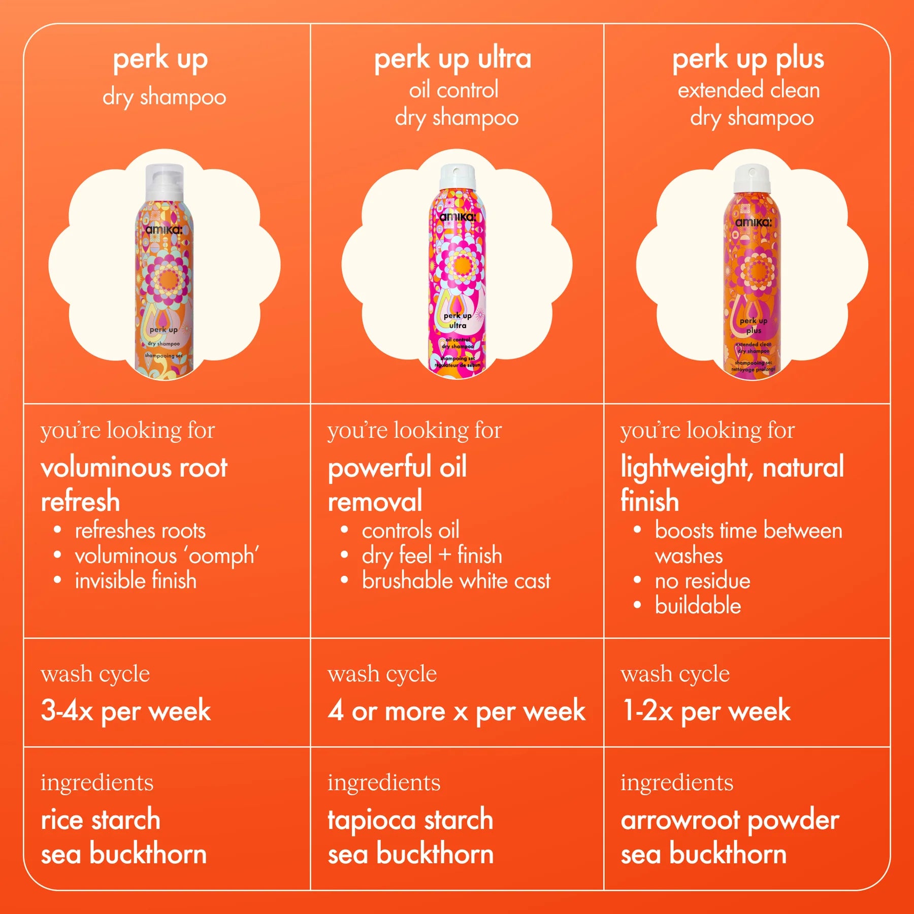 - infused with good-for-scalp ingredients like mandelic acid + arrowroot powder, perk up plus extended clean dry shampoo allows you to go the distance between wash days with a lightweight, natural feel + finish.