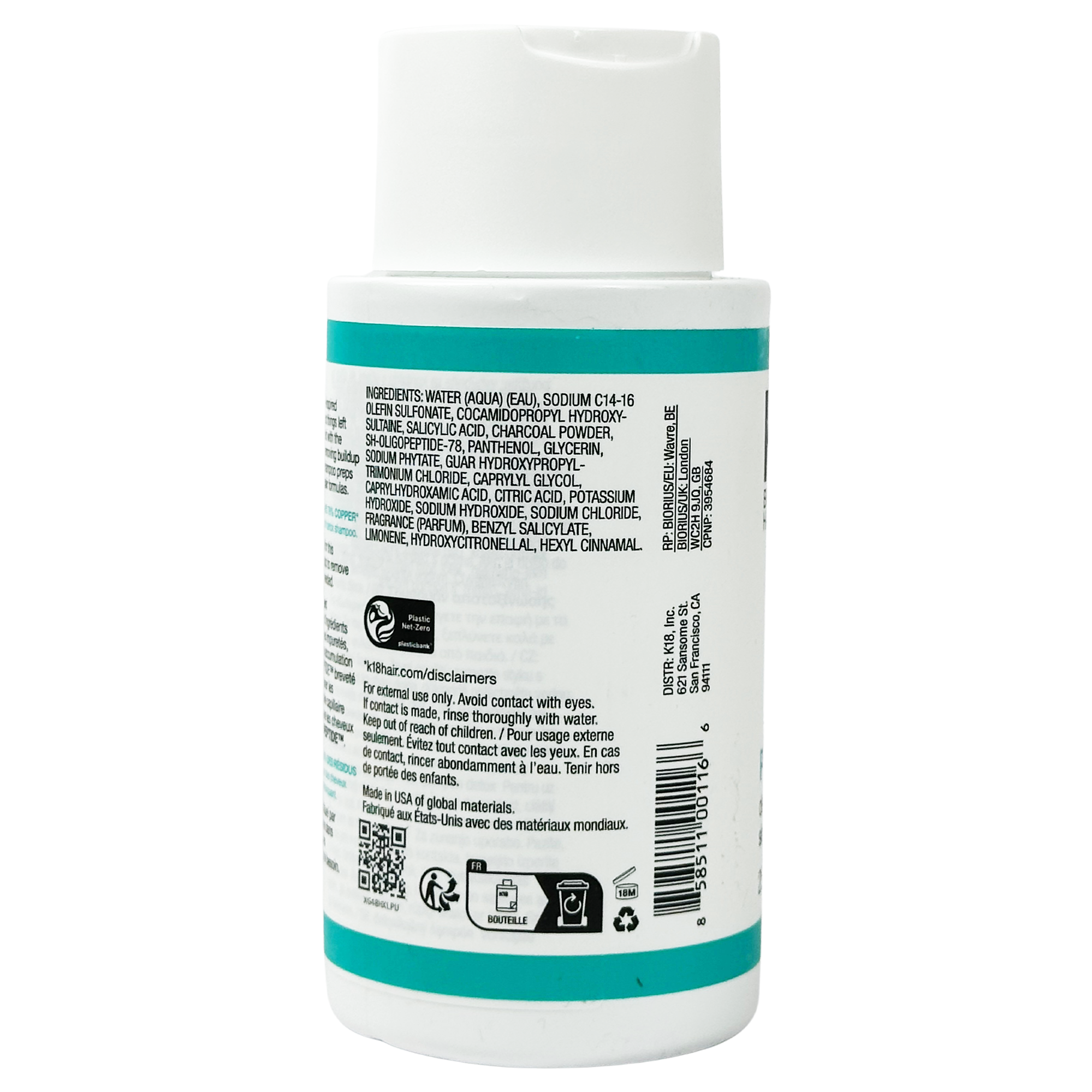 A color-safe, non-stripping clarifying shampoo with the K18PEPTIDE to gently but effectively remove 99% product buildup*, 95% sebum* + 76% copper* for detoxified, refreshed hair.