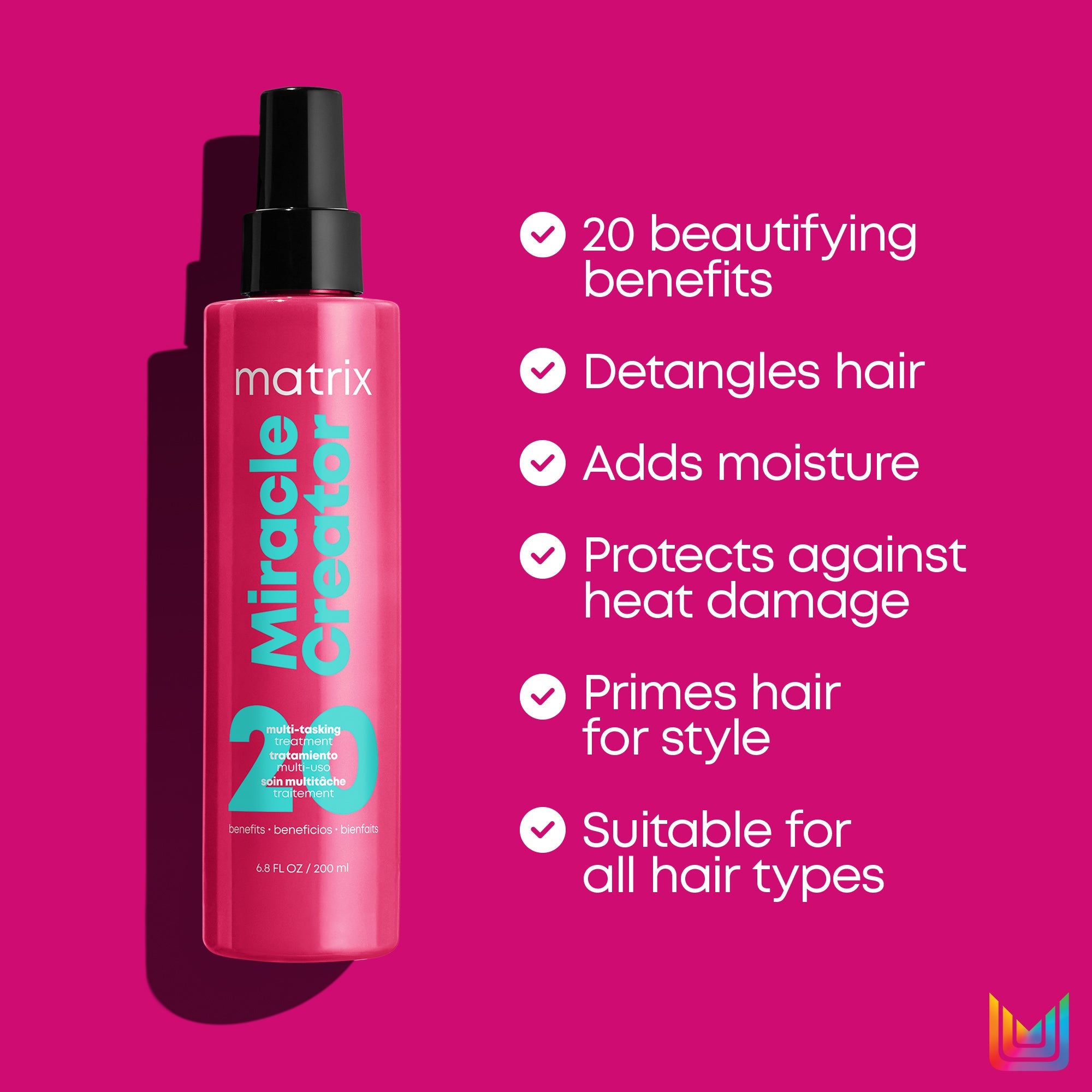 Multi-tasking treatment offers 20 hair beautifying benefits.