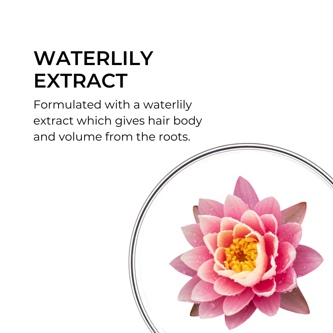 VOLUMIZING WATERLILY EXTRACT - Formulated with a waterlily extract which gives hair body and volume from the roots.