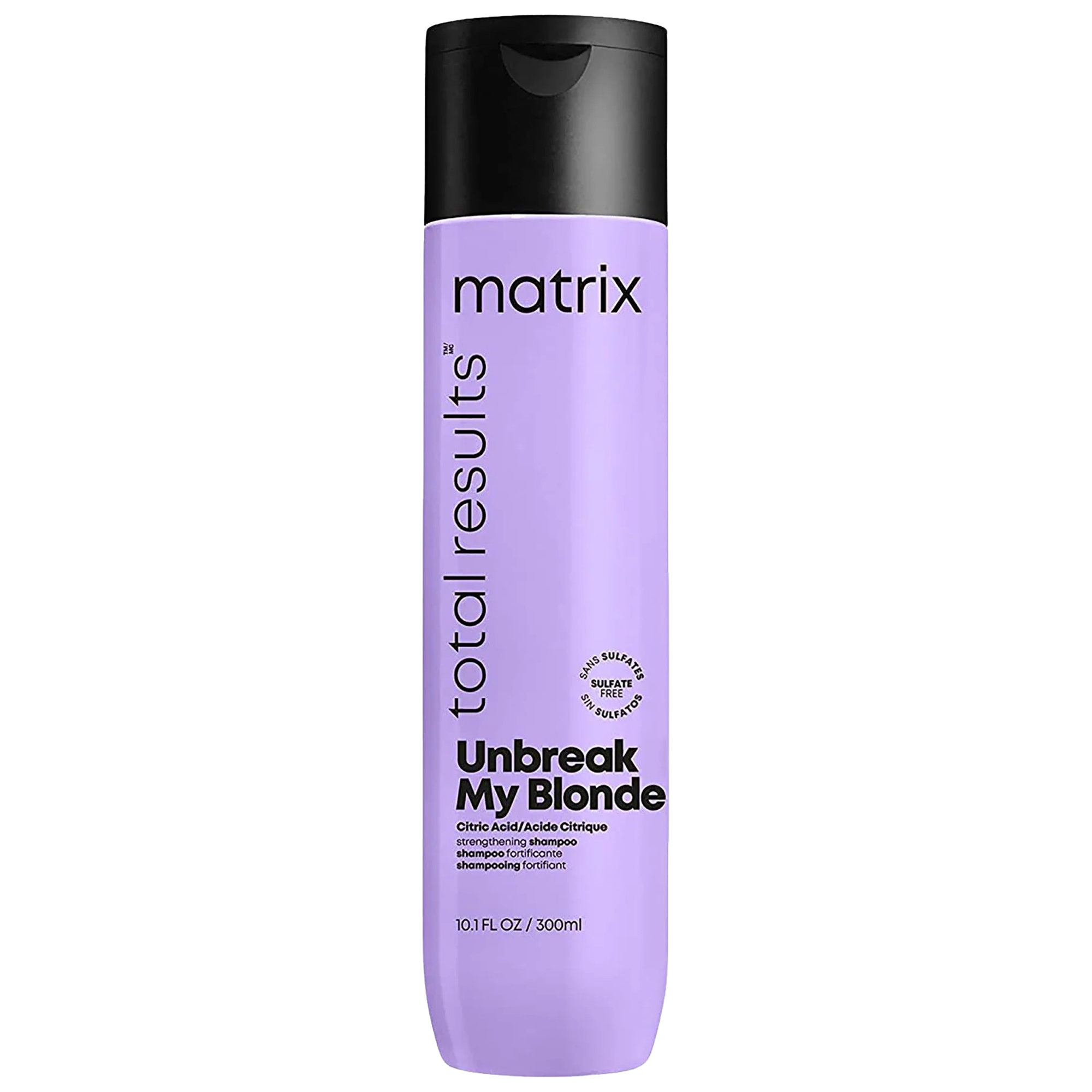 Matrix's Unbreak My Blonde Shampoo is a bond strengthening shampoo developed to revive all types of lightened hair. This highly-conditioning sulfate-free shampoo gently cleanses the hair while strengthening bonds. Reinforces weakened bonds. Highly conditioning sulfate-free technology. Revives lightened & over-processed hair. Leaves hair soft, shiny & stronger. pH balancing. Perfect for all hair types & textures.